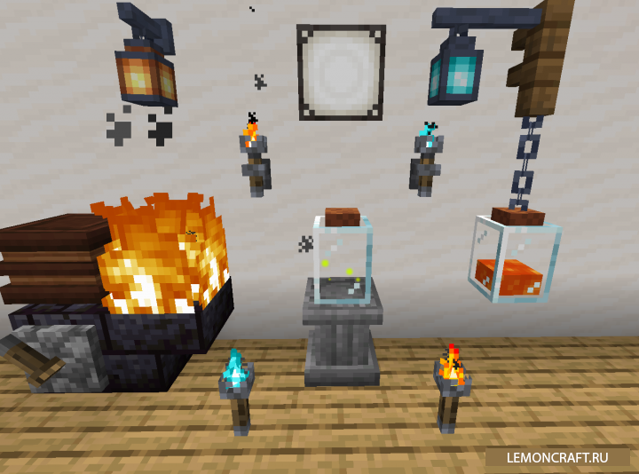 Мод на анимированные декорации Supplementaries добавляет в игру большое количество анимированных декоративных блоков имеющих индивидуальный функционал и отлично вписывающихся в ванильную составляющую игры.